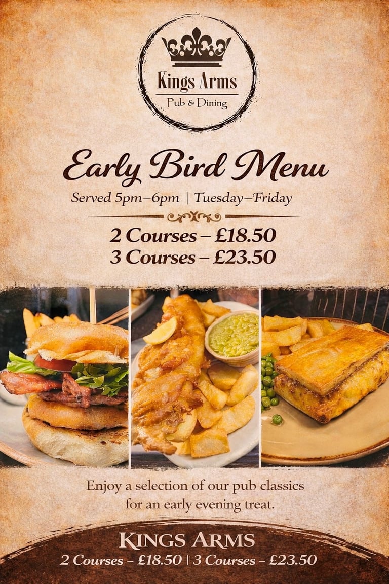 Experience rustic charm and hearty meals in our dog-friendly countryside pub, featuring fresh homemade bread, my Grandmas very own cheese & onion pie, dry-aged steaks, and classic British dishes. Join us for a delightful dining experience.